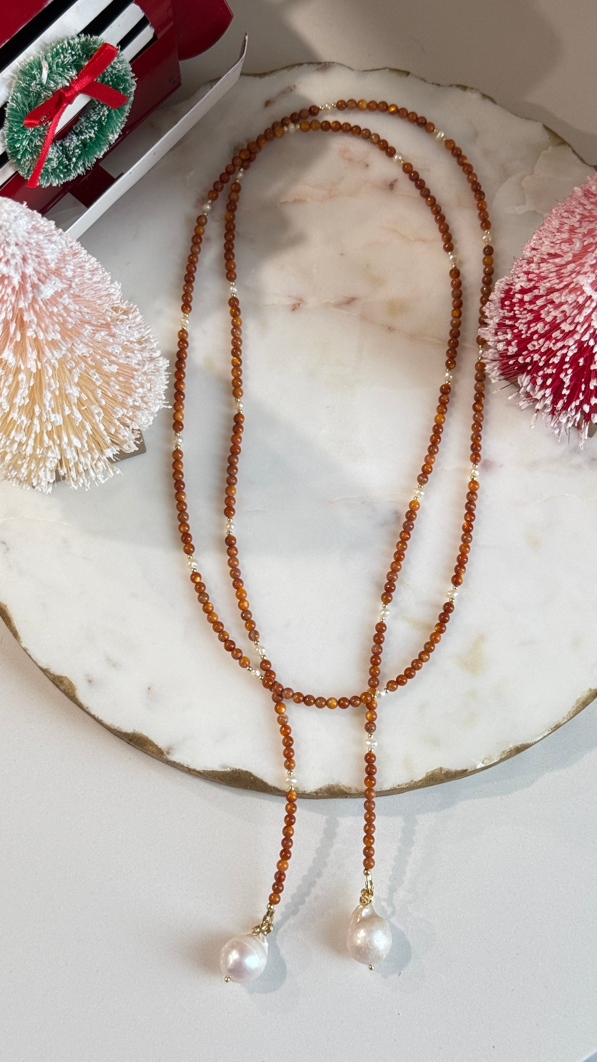 Collar doble vuelta en Beige ojo de tigre con perlas