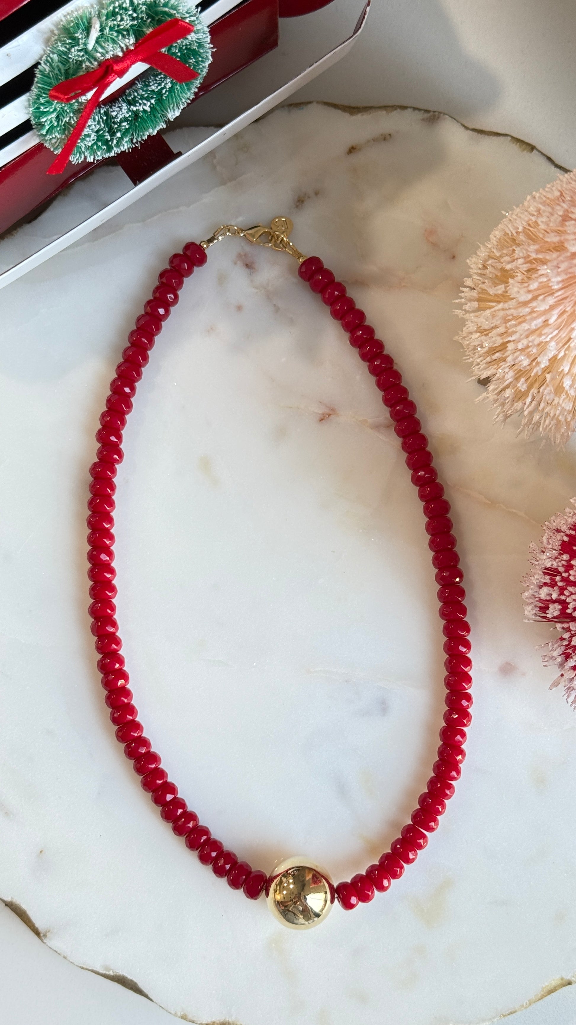 Collar Rojo bola dorada